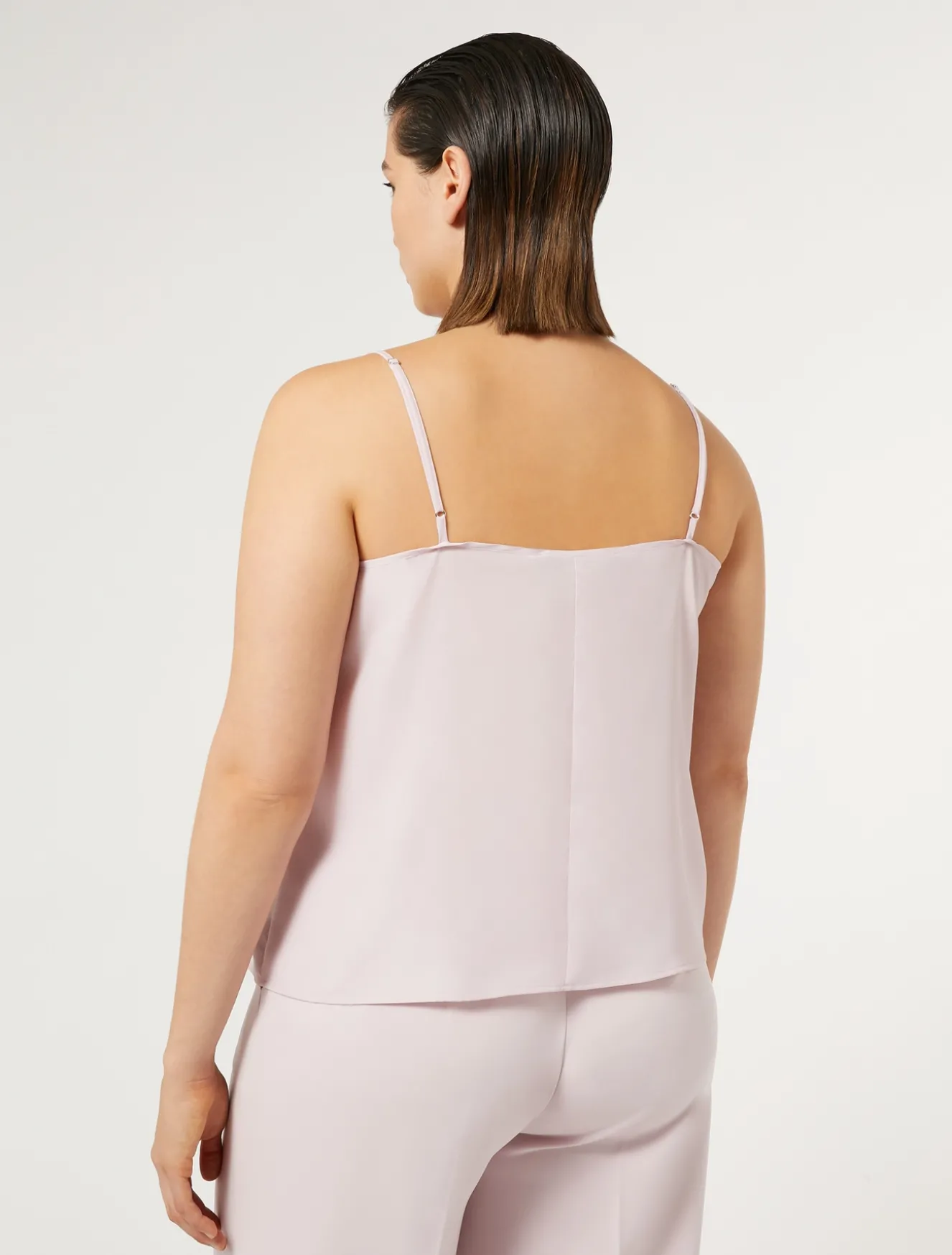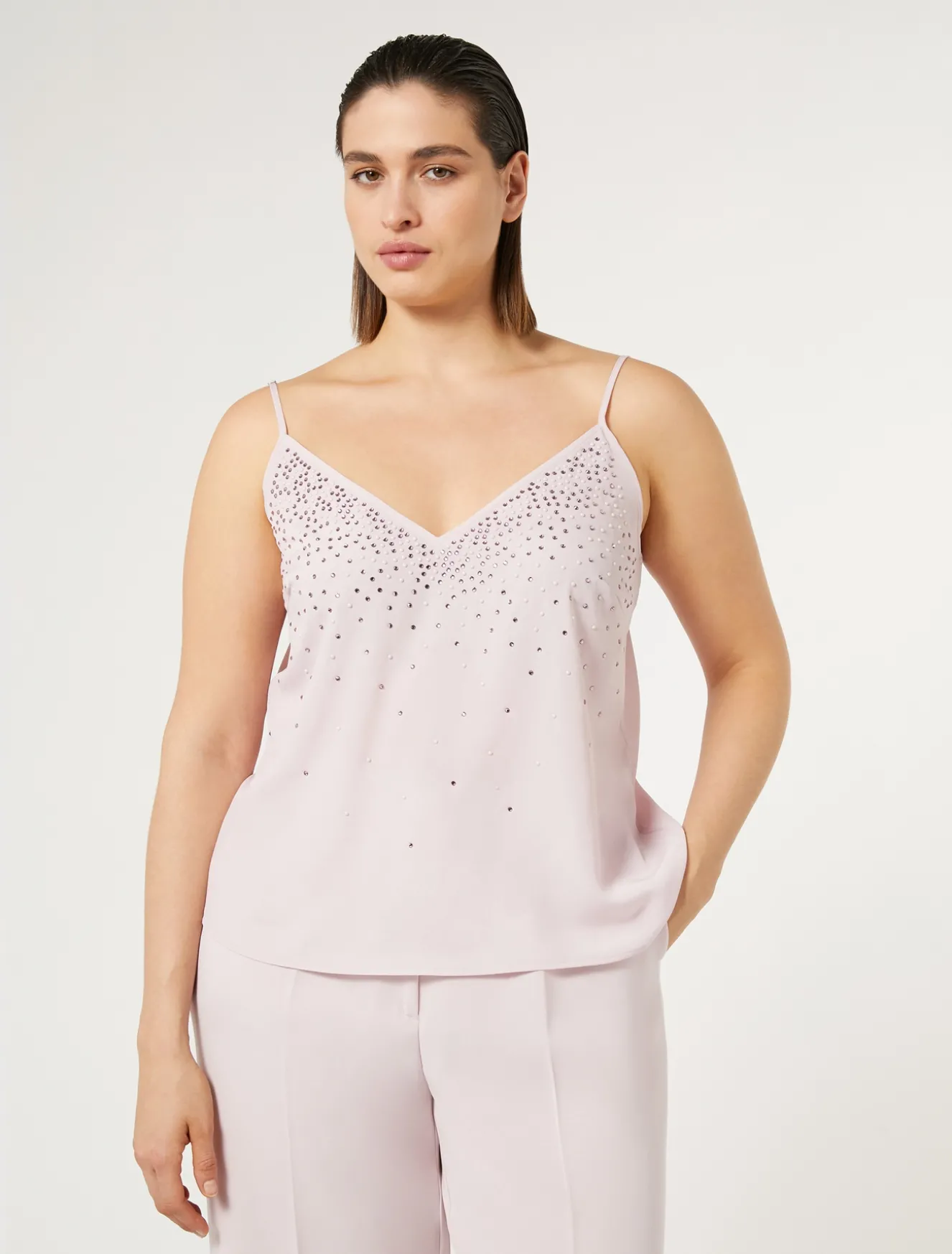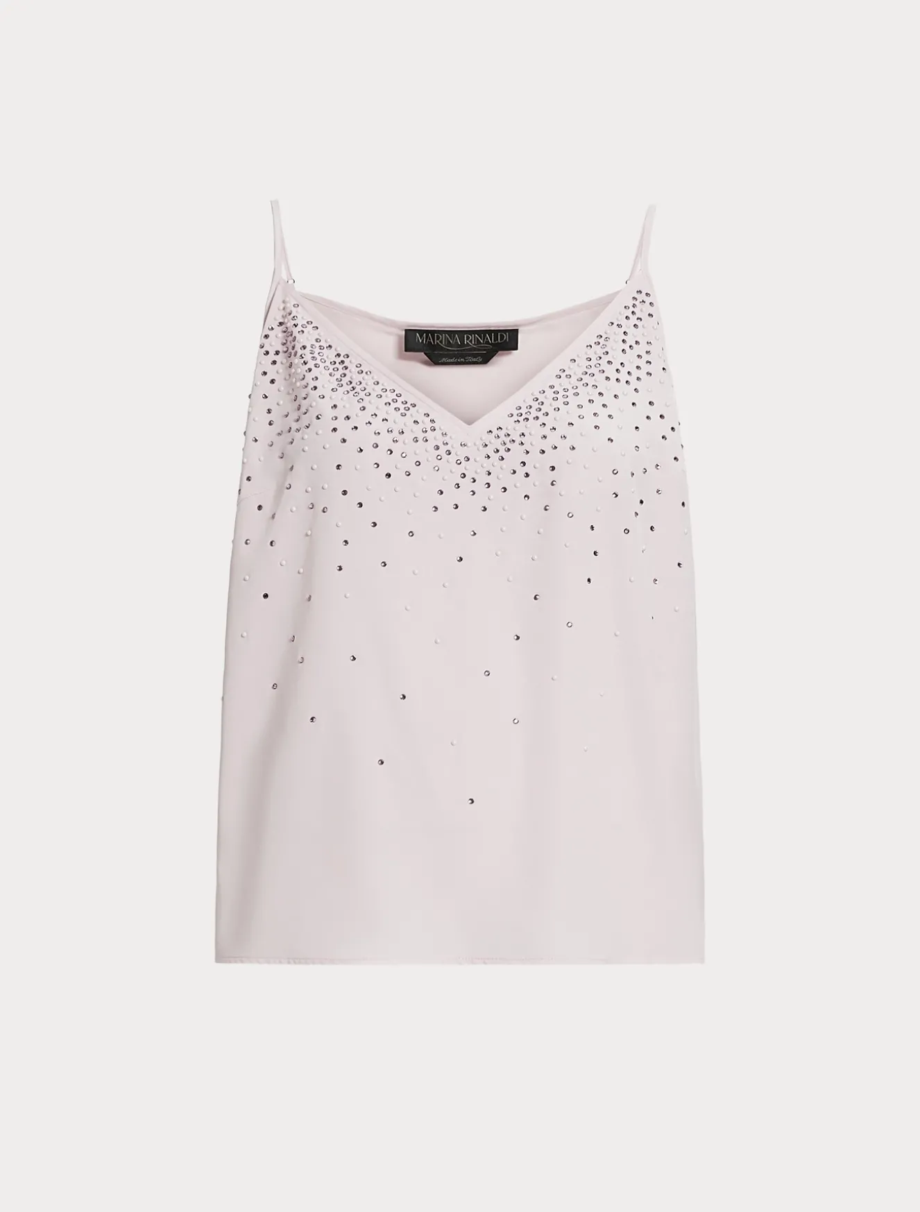 Das Top aus Crêpe de Chine ist mit einer üppigen Stickerei mit Strasssteinen und thermoklebenden Perlen verziert. Kombiniere es mit Blazern und Jacken, um deinem Style eine leuchtende Note zu verleihen.Das Kleidungsstück ist Teil der Kollektion Elegante.