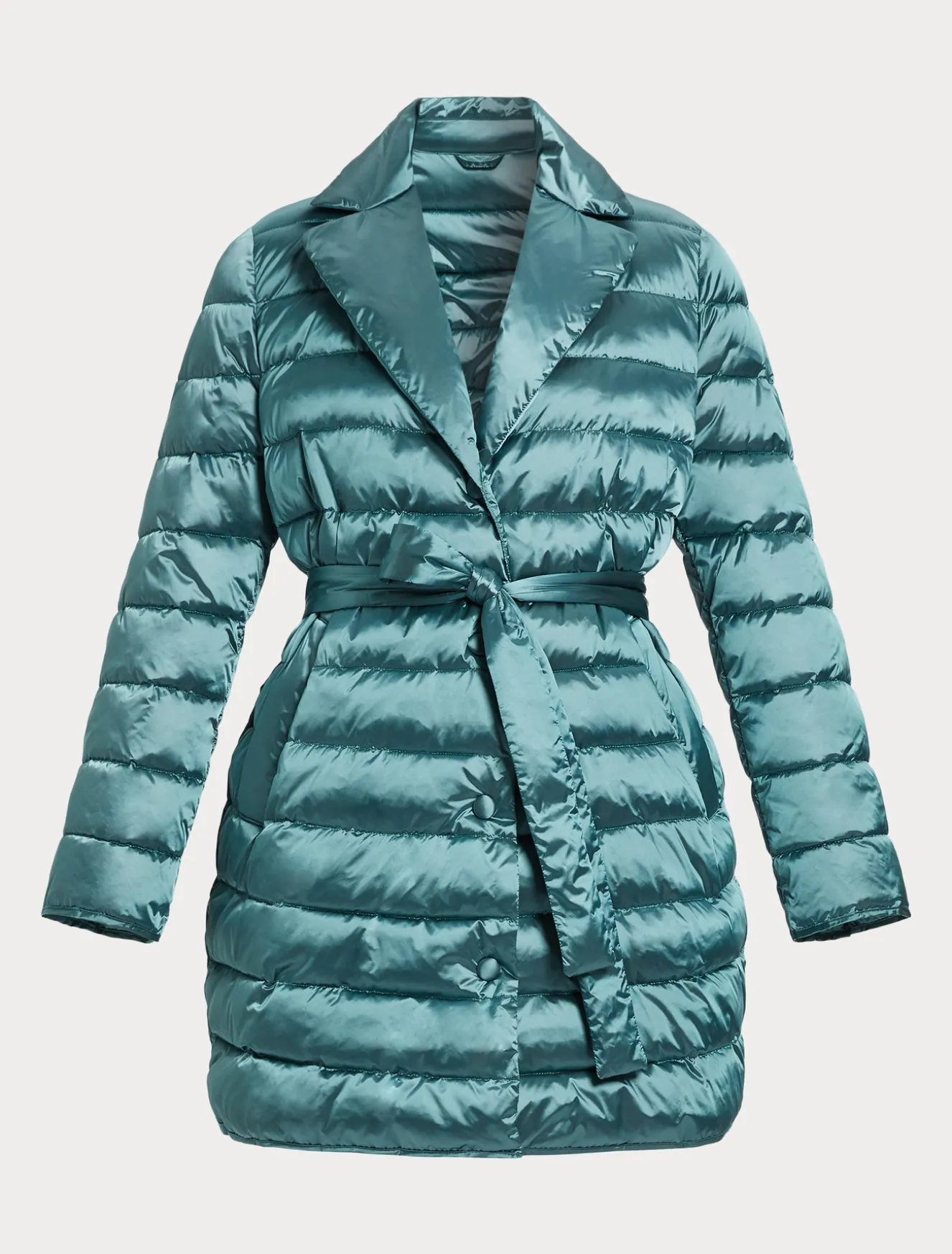 Klassischer Look und technische Strukturen: das ist die Daunenjacke mit Reverskragen, wasserabweisendem Finish und Wattierung . Mit dem passenden Gürtel kannst du die Weite anpassen.Das Kleidungsstück ist Teil der Kollektion Persona by Marina Rinaldi.