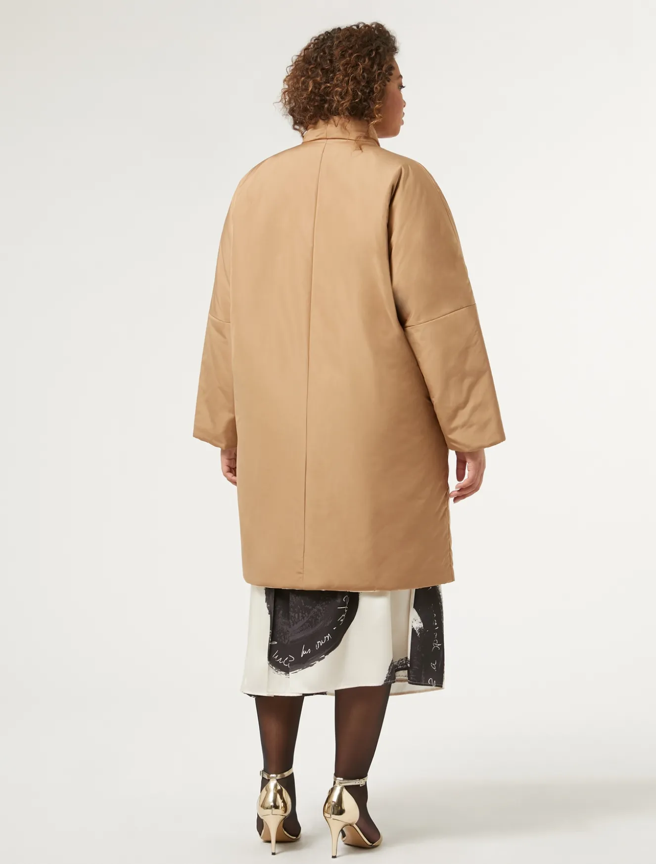 Wattierte Wendejacke aus wasserabweisendem Funktionscanvas auf der einen und einem in Goldfarbenen laminiertem Stoff auf der anderen Seite, die Funktionalität und Glamour gleichzeitig verspricht. Du kannst sie in der Taille mit dem schlauchförmigen Gürtel mit Gürteltasche anpassen.Dieses Modell gehört zur Hauptkollektion von Marina Rinaldi.
