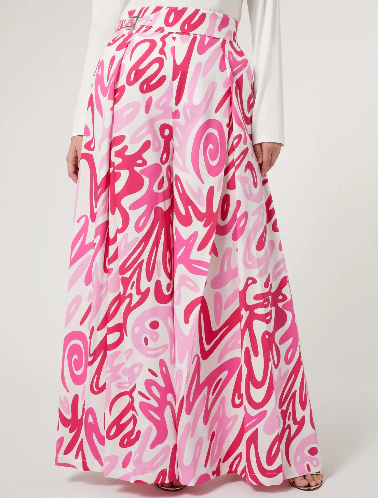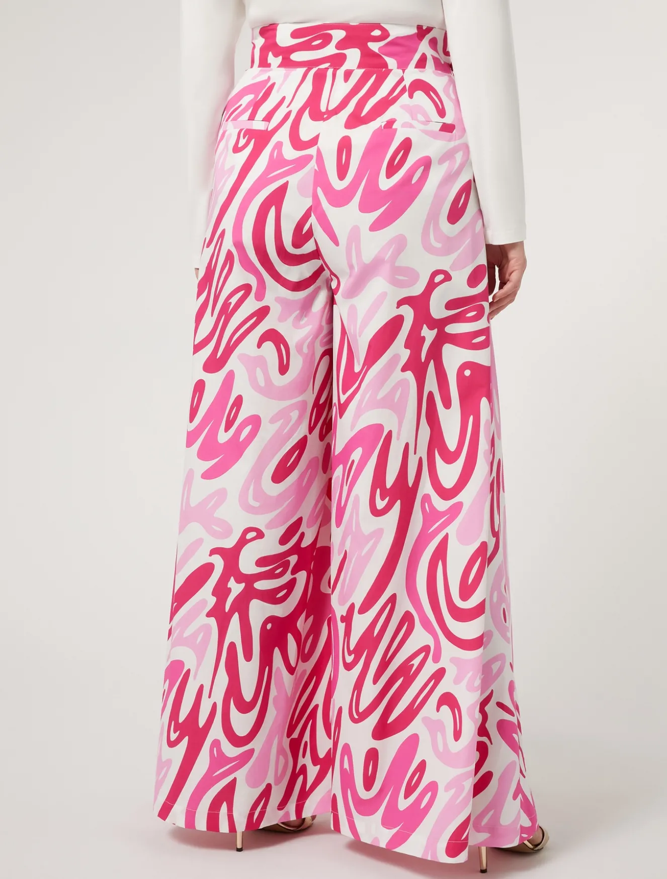 Breite Popeline-Hose mit Kellerfalten vorne und einem exklusiven Print. Taille mit raffinierter Gürtel-Optik und einer Metallschnalle.Das Kleidungsstück ist Teil der Sonderkollektion von Sara Battaglia für Marina Rinaldi.