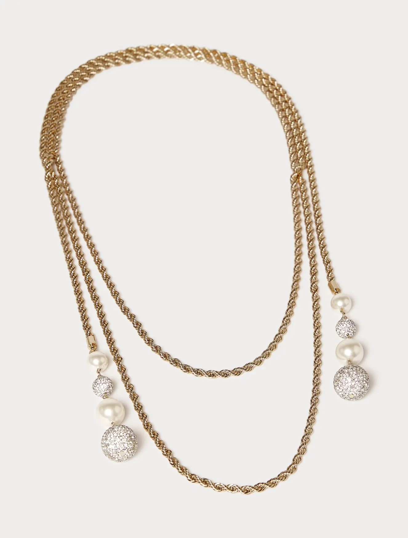 Extralange Kette tragbar als Wickelkette mit großen Perlen und Enden mit Schmuckstein. Ein raffiniertes Schmuckstück für einen Hauch von Glamour.Das Kleidungsstück ist Teil der Kollektion Elegante.